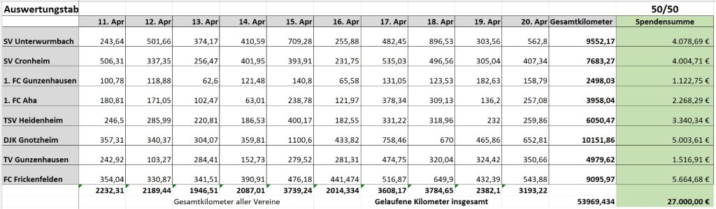 Herzlichen Glückwunsch an die DJK Gnotzheim für die meisten erlaufenen Kilometer und an den FC Frickenfelden für die höchste Spendensumme!