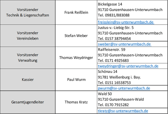 Weitere Ansprechpartner der jeweiligen Abteilung des SVU findest Du auf der Spartenseite.